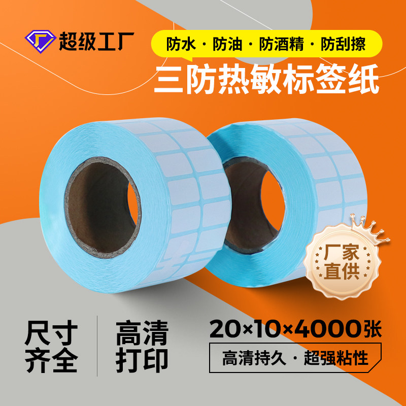 双排三防热敏标签纸20x10x4000电子面单纸超市条码纸不干胶打印纸