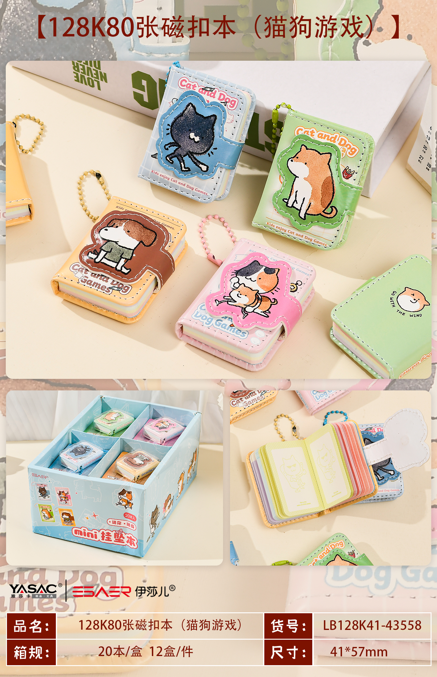 Mini magnetic buckle notebook (cat and dog game) LB128K41-43558