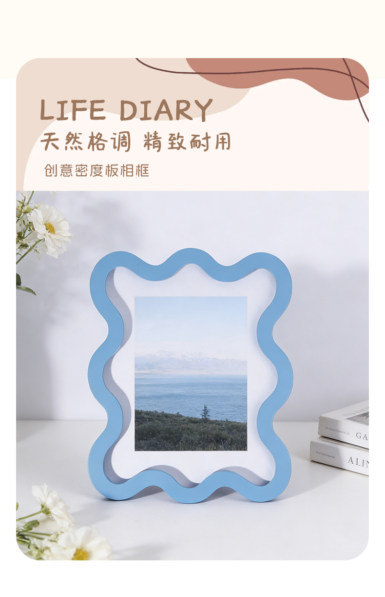 Nordic minimalist macaron color wave wooden photo frame bedroom living room decoration manufacturer wholesale hanging dual-use