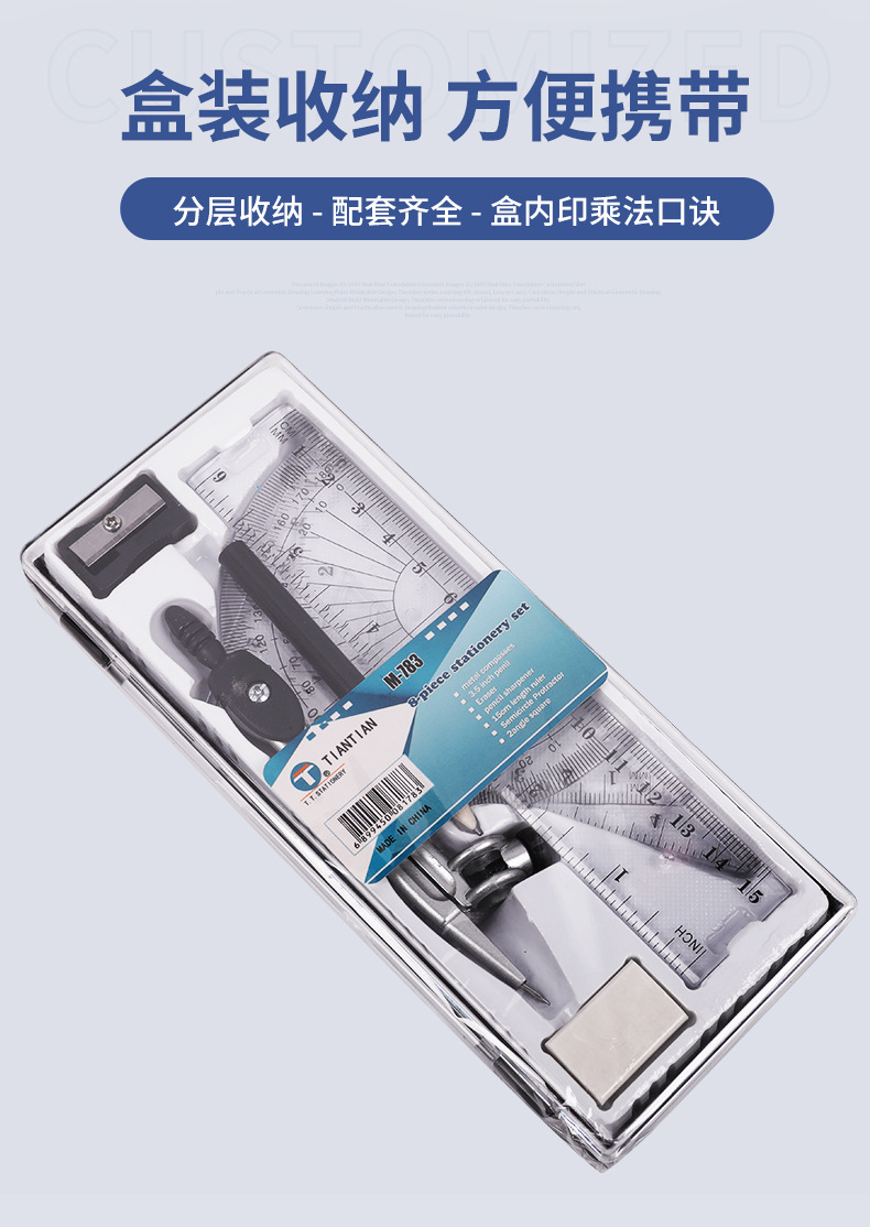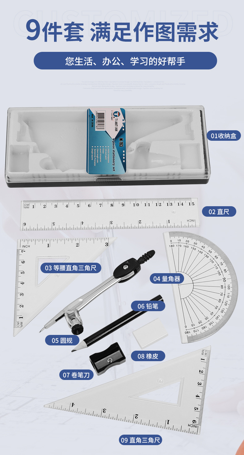 9199-WM 蓝黑两色夹铅笔套规8件套