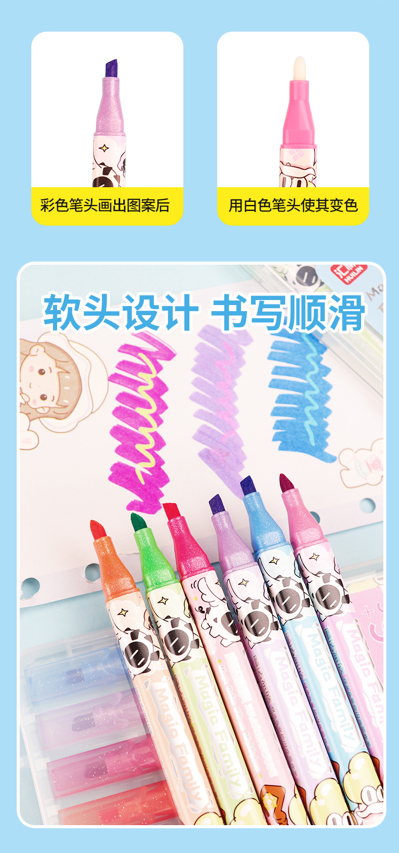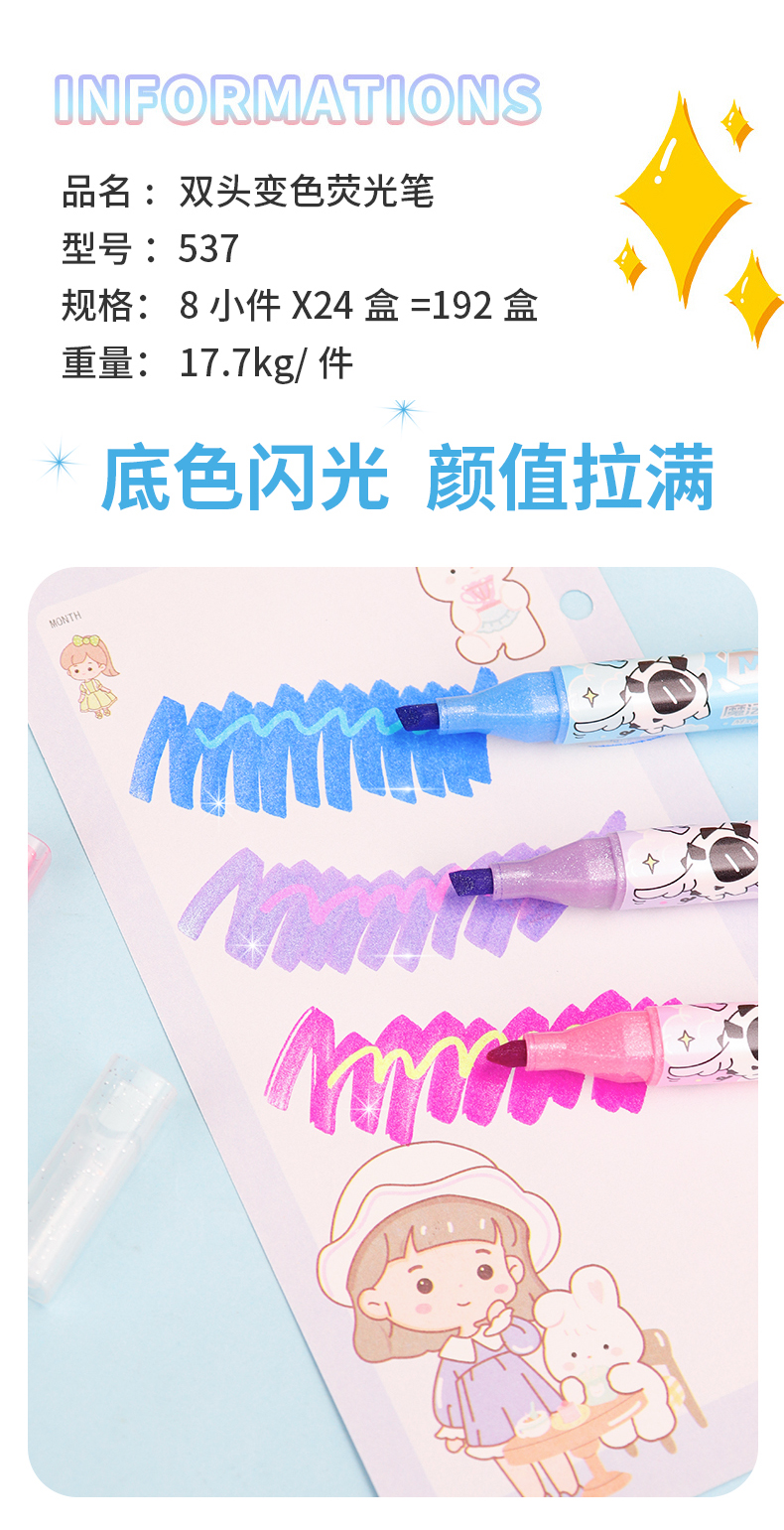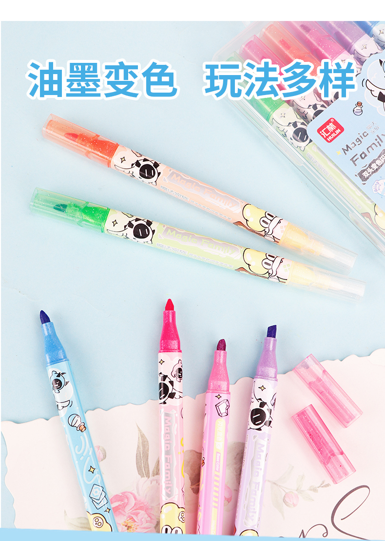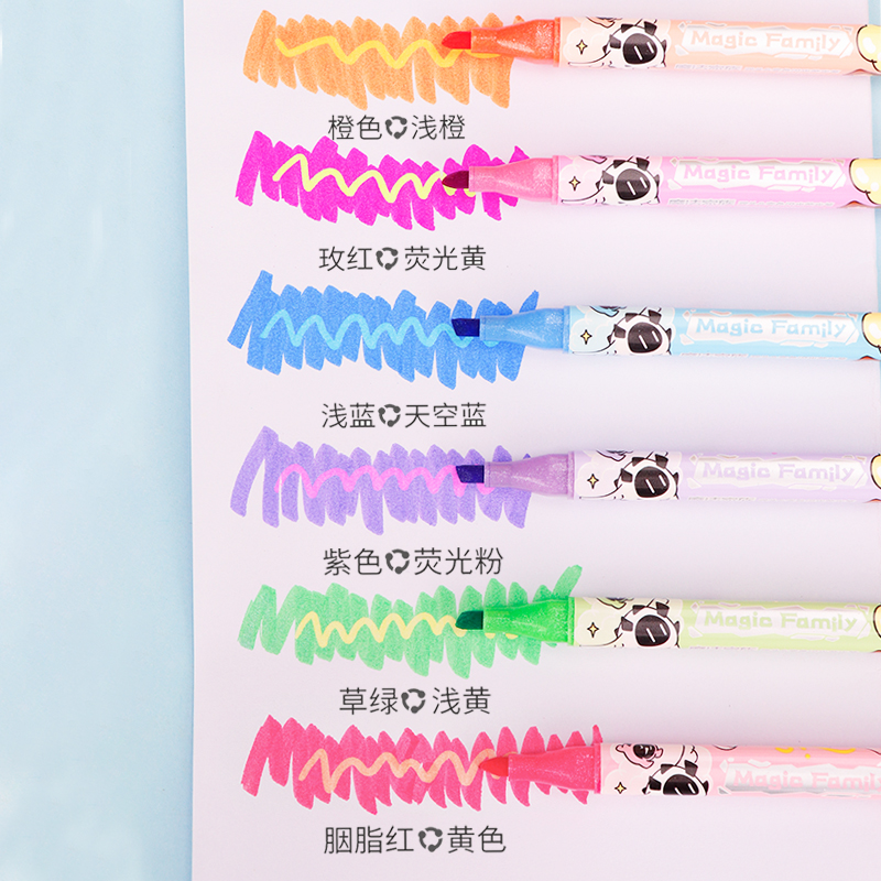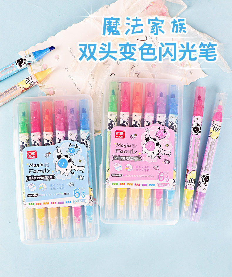 6支双头变色闪光荧光笔