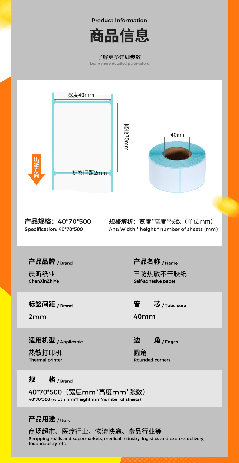 三防热敏标签纸40x70x500 不干胶纸物流快递电子面单纸条码打印纸