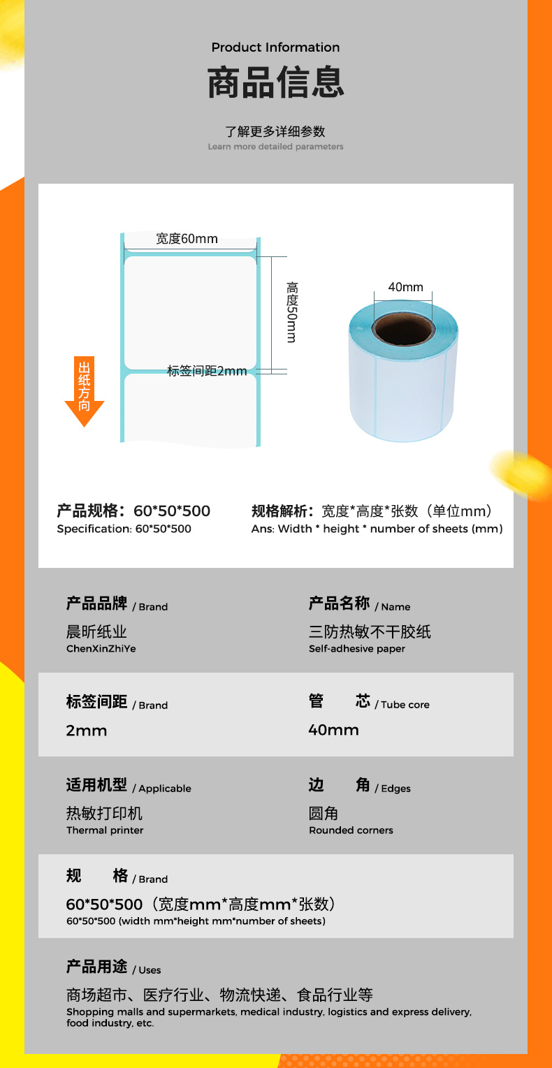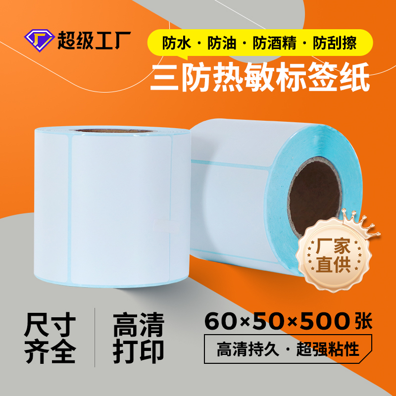 厂家批发物流快递面单打印纸三防热敏标签纸60x50x500饮料贴纸