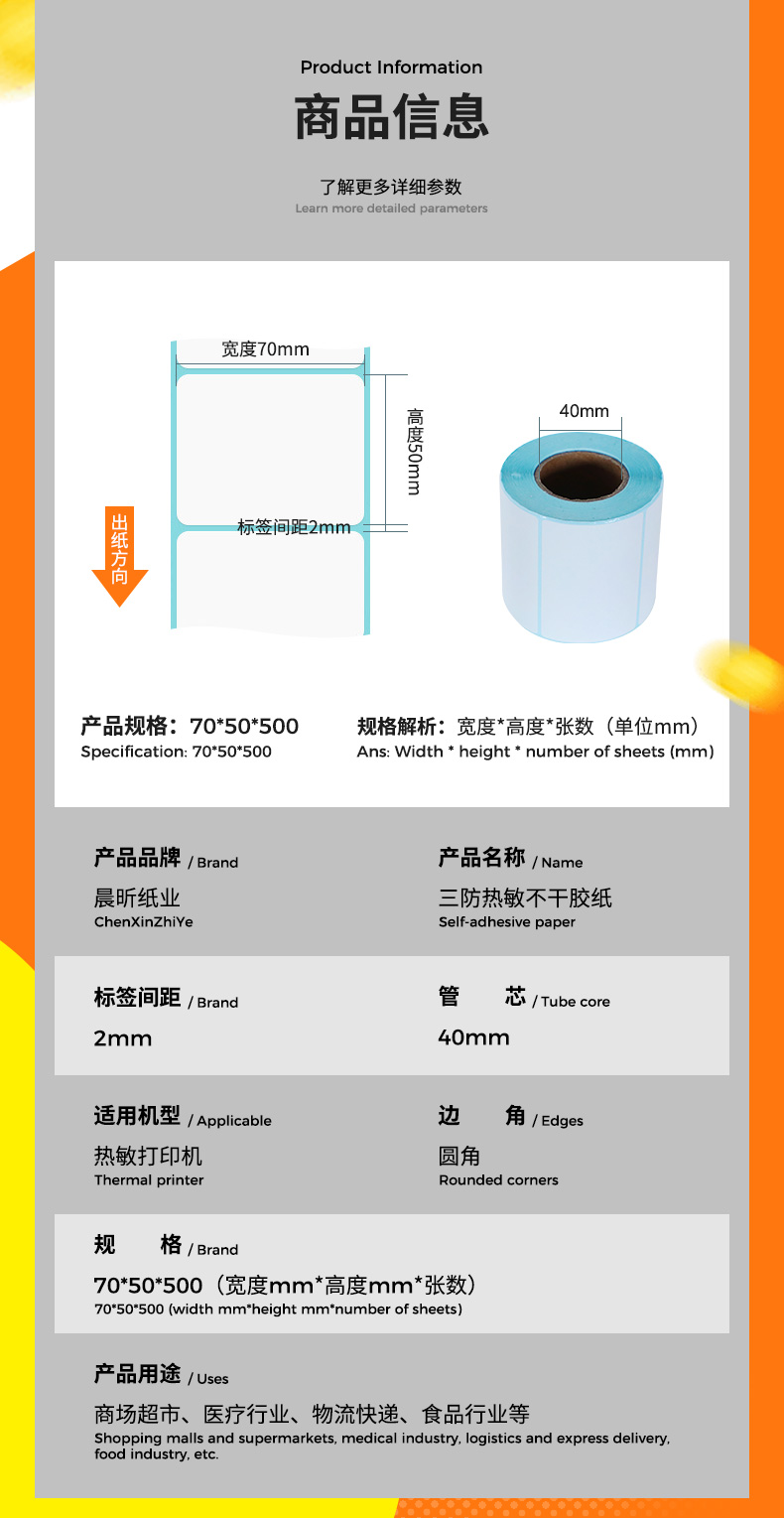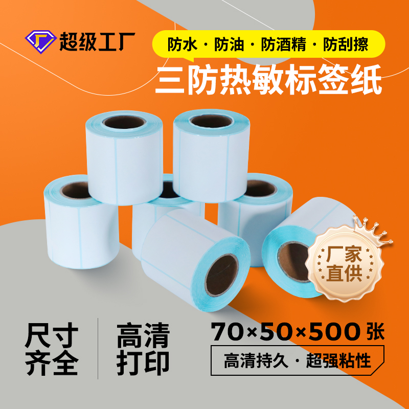 三防热敏标签纸70x50x500不干胶打印纸超市贴纸电商快递面单纸
