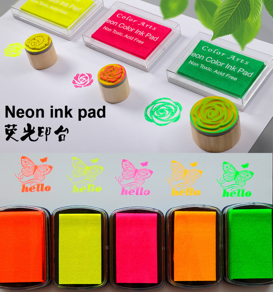 荧光印台印泥DIY印章手账 凹腰彩色手指画儿童可洗印泥创意