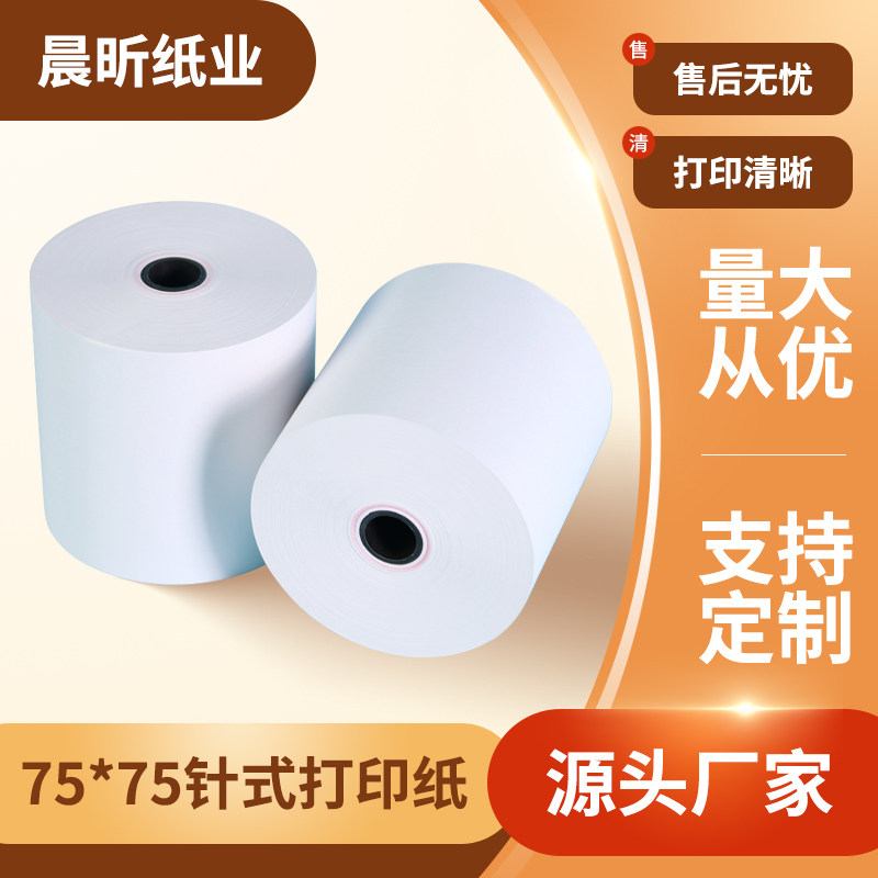 厂家定制75*75双胶收银小票纸加工无碳针式打印纸75x75单层压感纸